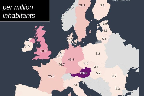 Map found on reddit The map above shows the number of antisemitic incidents recorded in each European country per million inhabitants (of all religions) in 2023. Austria is the big outlier at 128.9 per million people, whereas Spain is at the other extreme with “only” 2.1 per million. The data comes from the Tel Aviv … Continue reading Antisemitic Incidents In Europe 2023